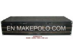 large wooden trunk made of fir solidwood, faux leather very goodquality steel hardwareThis wooden trunk table made offir solid wood , all around with black croco skin faux leather ,with metal fittings , it''s strong enough to put anything inor on it .